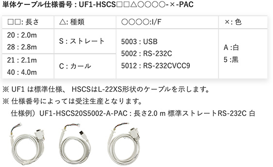 ※ UF1 は標準仕様、 HSCSはL-22XS形状のケーブルを示します。
