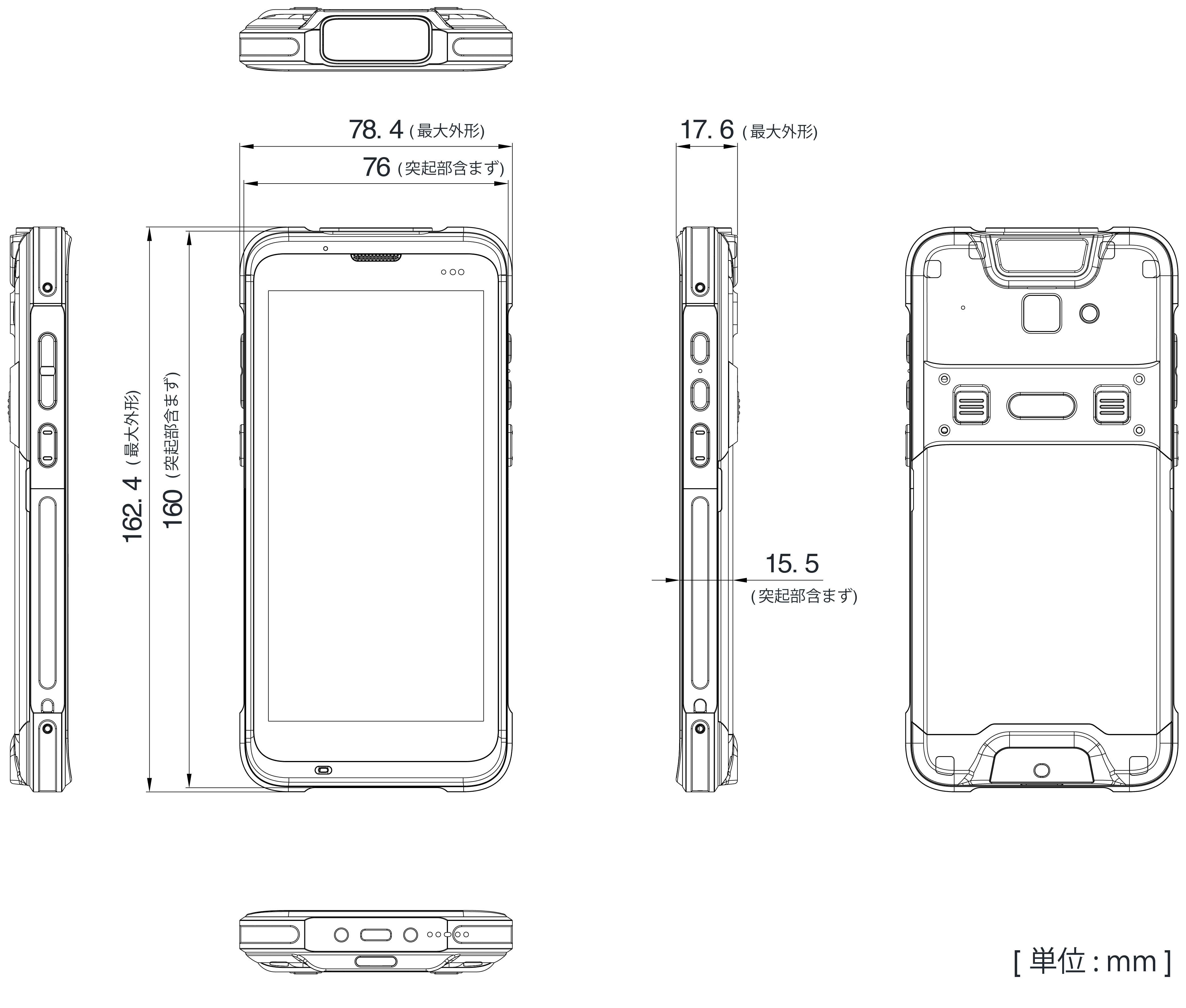 | 耐落下 | 1.8 m (本体) 2.4 m (ラバープロテクタ「オプション品」使用時) |