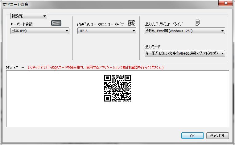 QR コード/1次元メニューコードで設定メニューを作成できる機能を搭載。複数の設定が一度にできるから、面倒だったキーボードインターフェイスのスキャナ設定もたくさんのスキャナに設定をコピーしたい場合も一発完了。印刷やクリップボードへのコピー、メニューリストを丸ごと含む設定の保存/復元も可能なので、使用用途も自由自在。