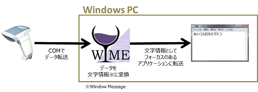 • WIME は Windows OS 上で動作する常駐アプリケーションです。COM ポートからの入力を文字情報に変換し、フォーカスのあるアプリケーションに出力します。